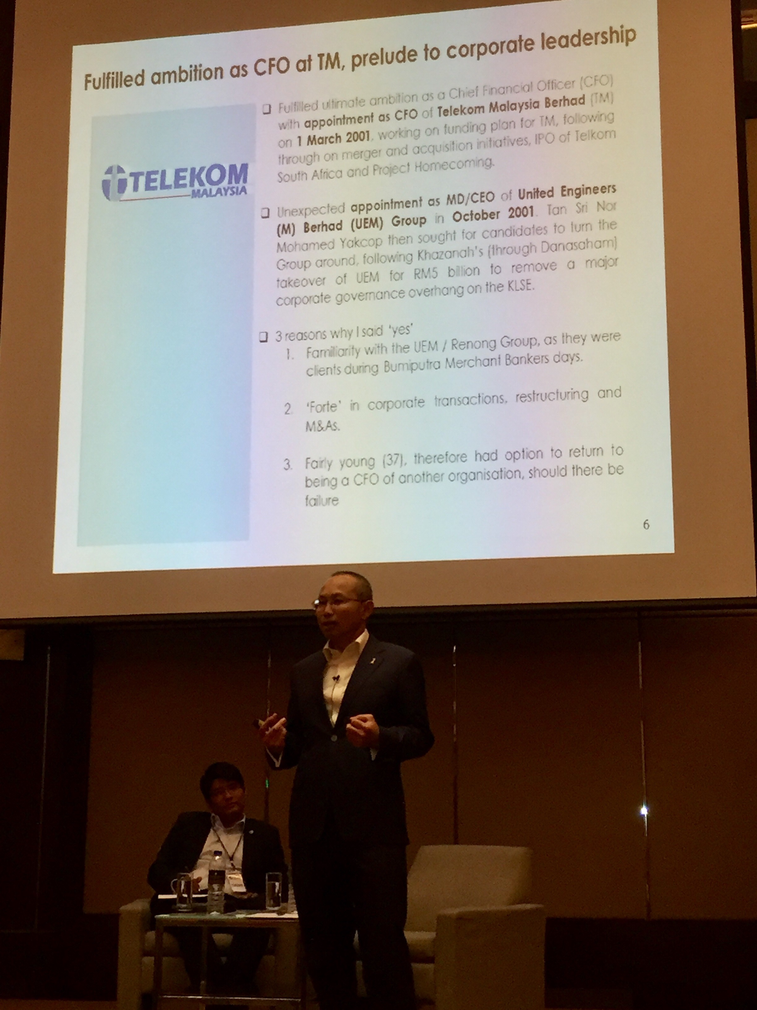 Tan Sri’s advice on personal leadership is something all of us can reflect on and I echo his points on need to be articulate, need for leaders to go to the ground (“gone are the days CEO can just tell people what to do”), that you don’t need to be loud to be heard and that you should focus on doing a good job on your tasks and not worry about your next career move – your reputation will precede you. Tan Sri’s lessons learnt on management principles are valuable reflections for both senior management and entrepreneurs/businessmen alike.