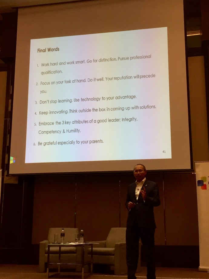 In his talk, Tan Sri spoke of his family background and shared his ambition and journey. He spoke about how he thinks the accounting profession is one of the more versatile professions in the corporate world and of his early ambition, to be a CFO in a listed company. He fulfilled this ambition at age 37.
